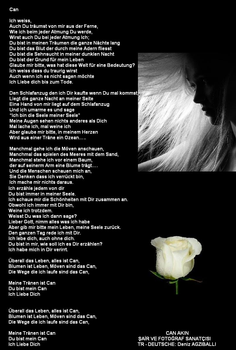 Wenn Du wie ein Frühling kommen würdest İn mein gefrorenes Herz "Ich Liebe Dich" sagen würdest Immer bei mir bleiben Und mit mir noch einmal in die Ferne schwingen würdest… Ich kann Dich nicht vergessen Du sollst Trotz der Zeit Niemals von meiner Seele vergehen….. Heute Abend bin ich mit Dir ohne Dich Schaue mir Deine Bilder an und weine… Das von Dir gebliebene Liebeswunde Verstecke ich immer noch in meinem Herz Ich habe dich nicht vergessen Ich Liebe Dich